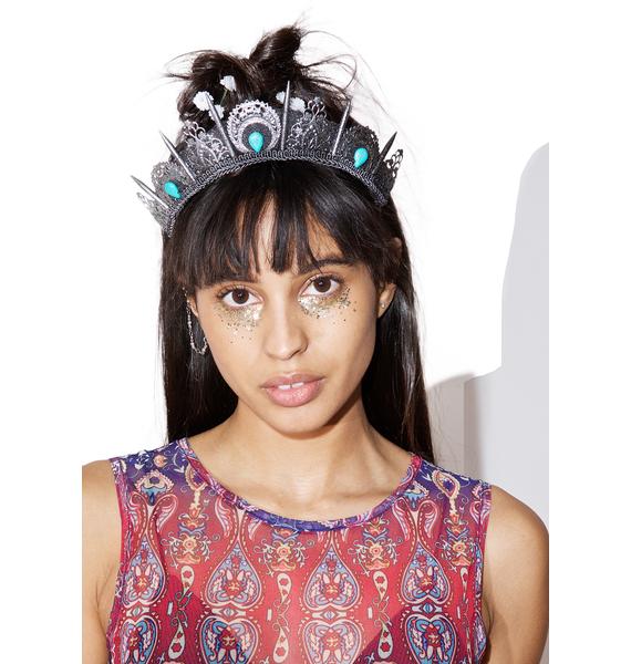 Loschy Crown , Cast A Spell In This Wicked Tiara That Has Smokey Glass Gemstones, Lunar Detailing, And Is Handcrafted N' Painted With Luvv.